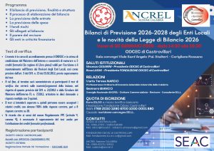 Titolo Evento: Bilanci di Previsione 2026-2028 degli Enti Locali,e le novità della Legge di Bilancio 2026