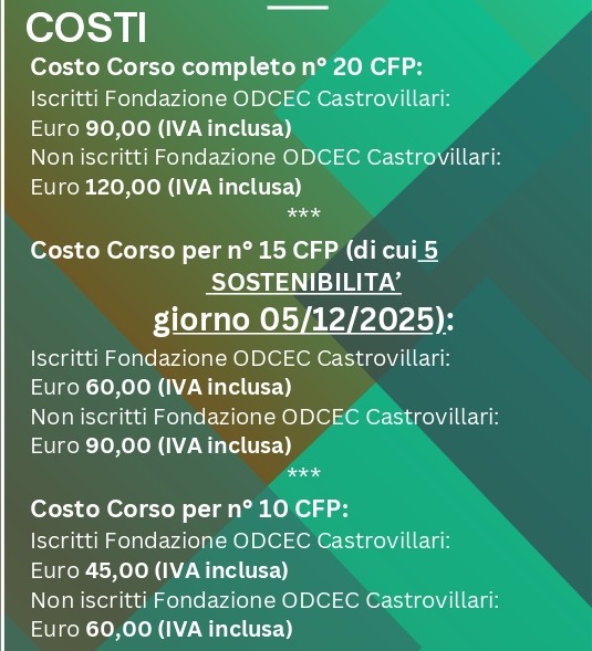 Il Corso è valido ai fini dell’aggiornamento professionale per Dottori Commercialisti ed Esperti Contabili.